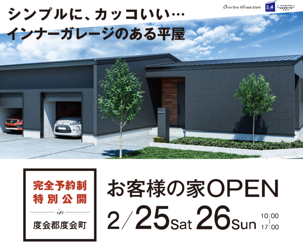 TEL 0598-25-0861(水曜・木曜日定休)【予約制】度会郡度会町・お客様の家見学会「インナーガレージのある平屋」 2月25日(土)・26日(日)