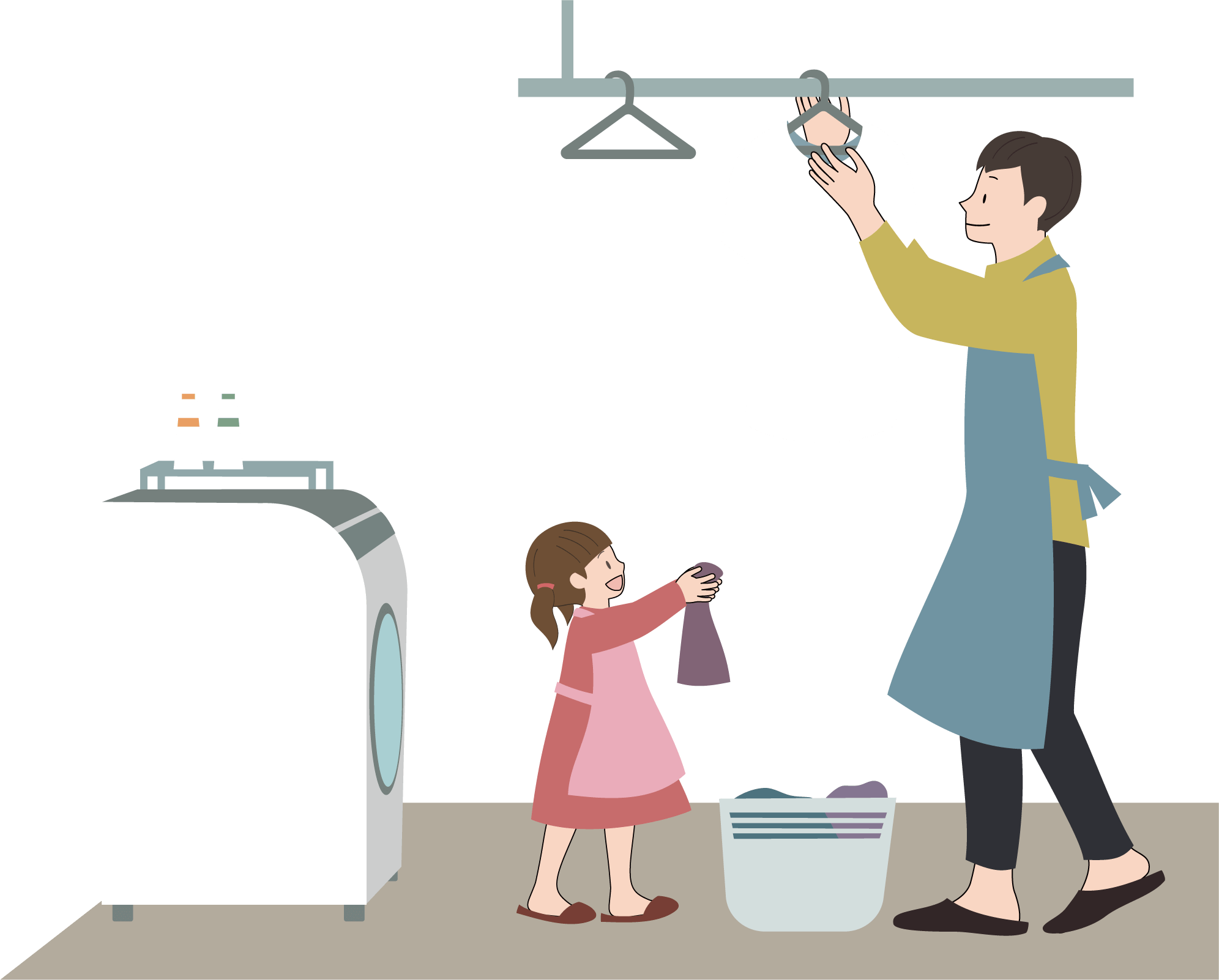 洗濯して、乾かして、片付けるという一連の仕事を全部完結できるほど広い専用のランドリールームを設けました。洗濯物をふかふかに乾燥できる「乾太くん」を備え、ランドリーポール「エアフープ」も天井に取り付け、浴室の換気乾燥暖房機と合わせて、室内干し環境は充実しています。
